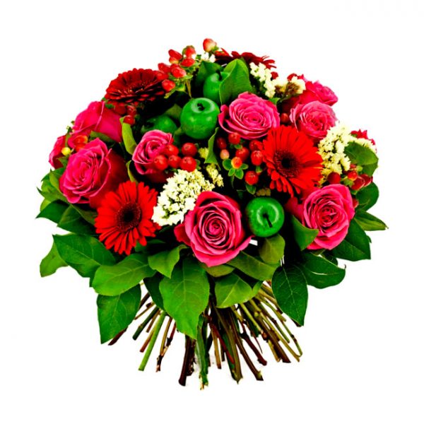 החל ₪ 180.00זר פרחים שזור פרחים בשילוב תפוח עץ ירוק, ורדים, חרציות, גרברות, ואלמנטים ירוקים. הזר מגיע עם קישוט ואריזה -